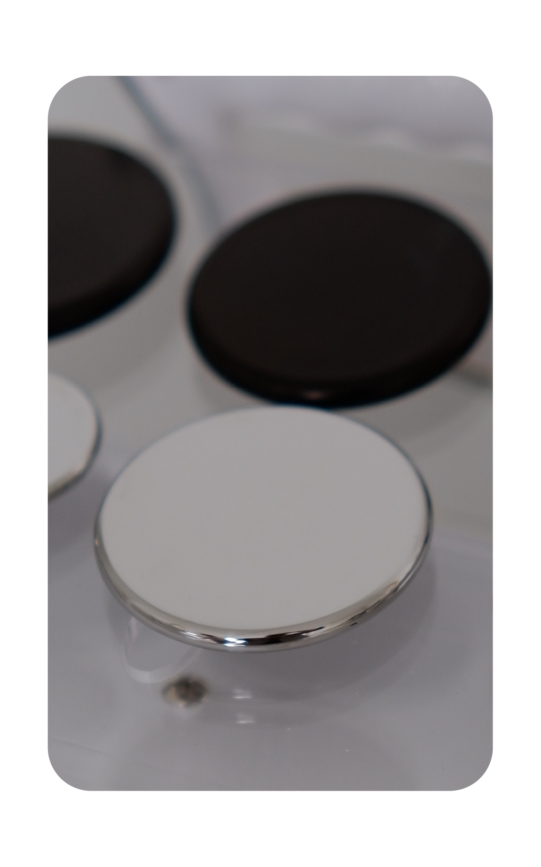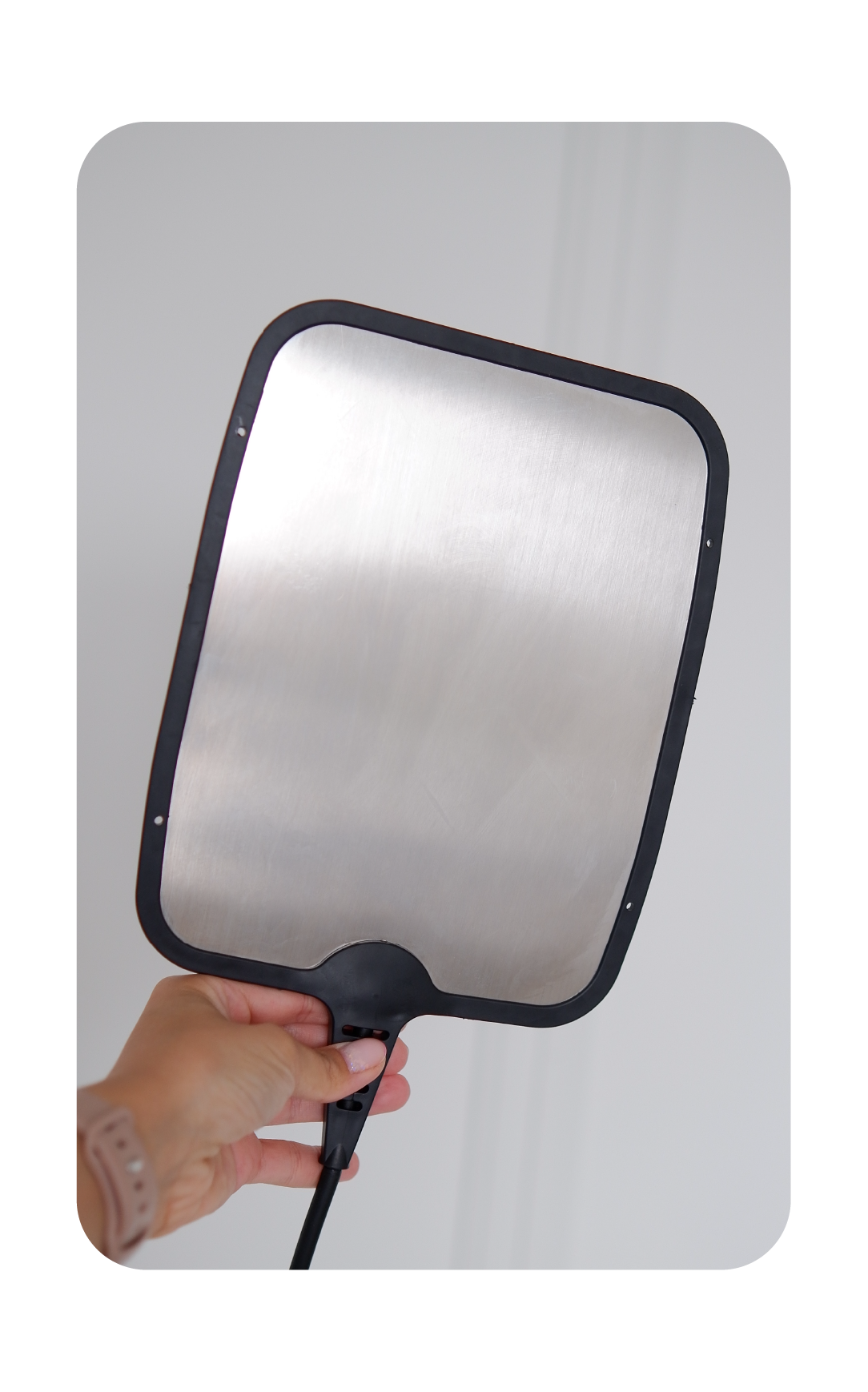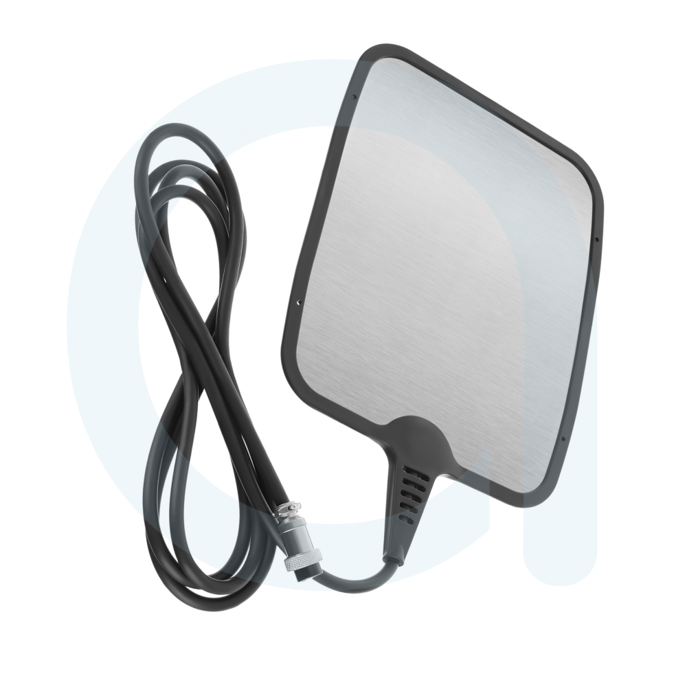 Metalowa elektroda bierna: wyróżnia się gładką powierzchnią, która zapewnia łatwe czyszczenie i dezynfekcję, co gwarantuje wysoki poziom higieny w gabinecie. Dzięki płaskiej konstrukcji stabilnie przylega do ciała, zapewniając komfort klienta i bezpieczeństwo podczas całego zabiegu.
