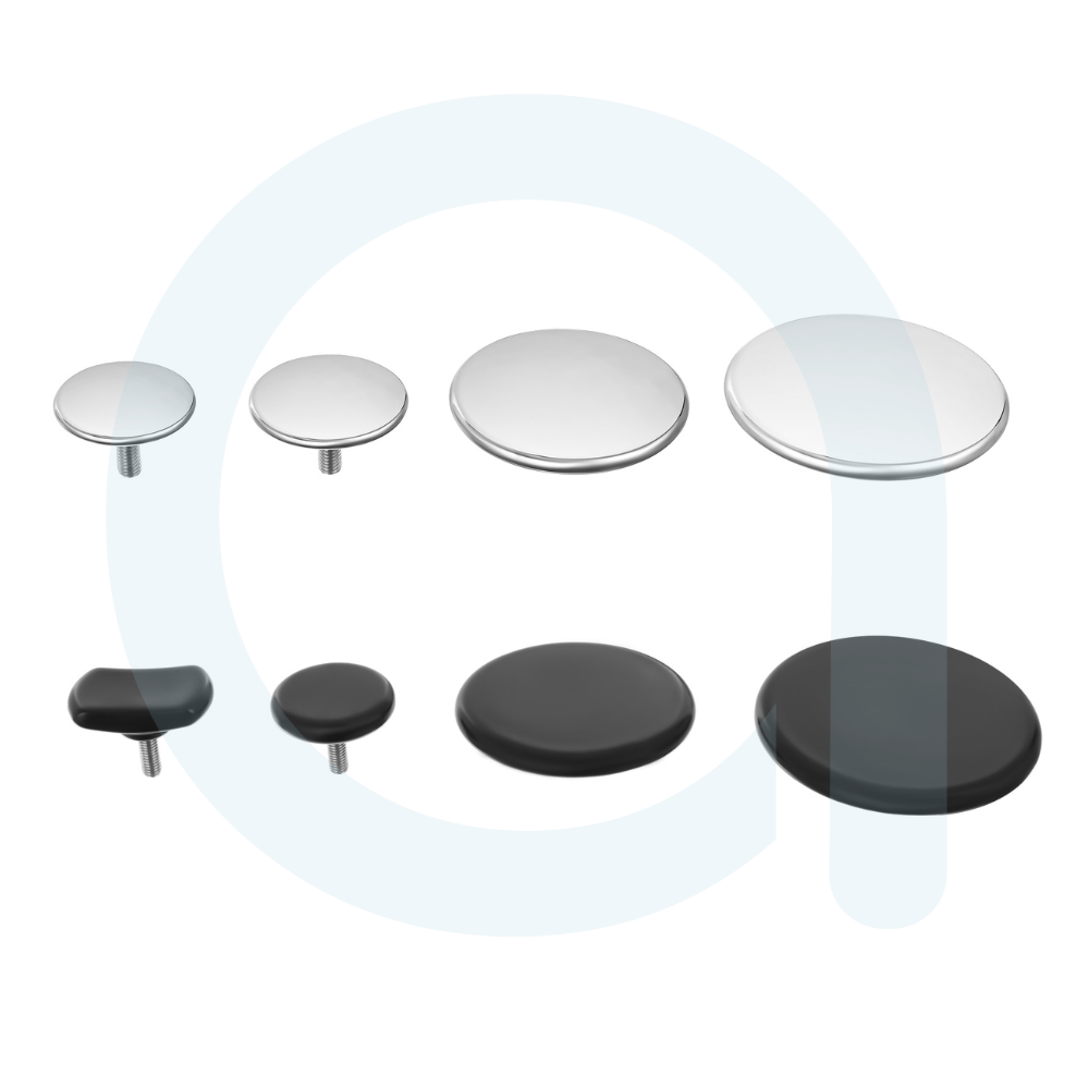Zestaw końcówek zabiegowych: każda z głowic monopolarnych posiada zestaw płaskich, okrągłych końcówek o różnych średnicach, które umożliwiają dopasowanie zabiegu do obszaru ciała lub twarzy.