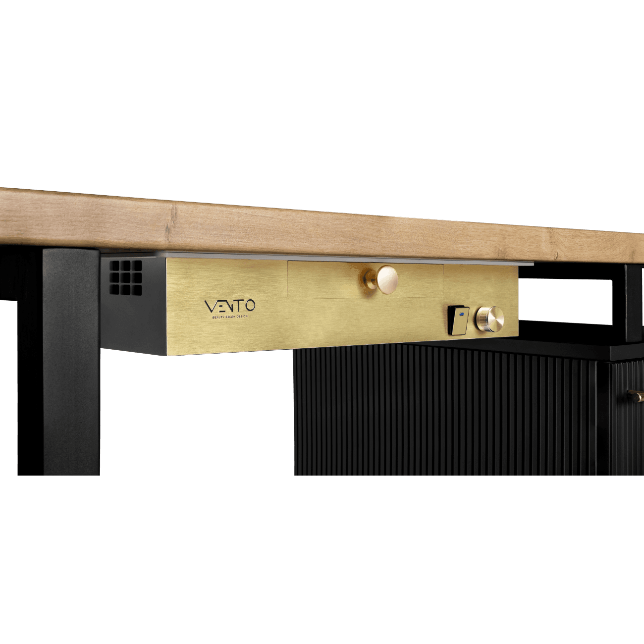 Pochłaniacz pyłu do paznokci VENTO PRO PLUS to bezworkowe, podblatowe urządzenie stworzone z myślą o salonach kosmetycznych dbających o wysokie standardy higieny i komfort pracy. Ten innowacyjny pochłaniacz doskonale integruje się z biurkiem Nero Essenza, tworząc funkcjonalną całość.