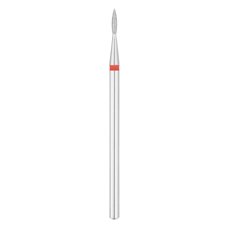 Frez diamentowy płomień idealnie nadaje się do efektywnego usuwania zrogowaceń z wału paznokciowego.