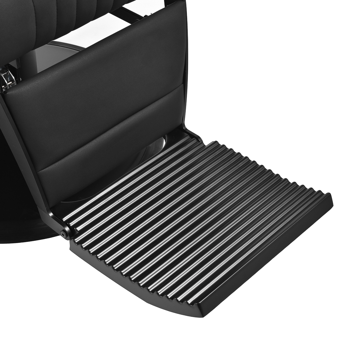 Wydajny podnośnik hydrauliczny pozwala na płynną regulację wysokości siedziska w zakresie 60–76 cm, nawet gdy klient już siedzi na fotelu, co umożliwia ergonomiczne dopasowanie fotela do wzrostu klienta i preferencji osoby wykonującej zabieg. Intuicyjny mechanizm boczny pozwala na łatwe rozłożenie oparcia i podnóżka do pozycji półleżącej, zapewniając komfort podczas bardziej precyzyjnych usług. Wysuwany zagłówek dodatkowo wspiera głowę, zwiększając wygodę użytkowania.