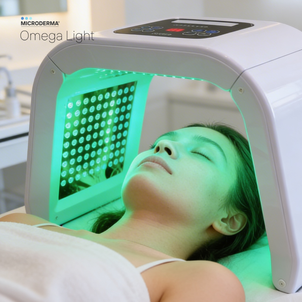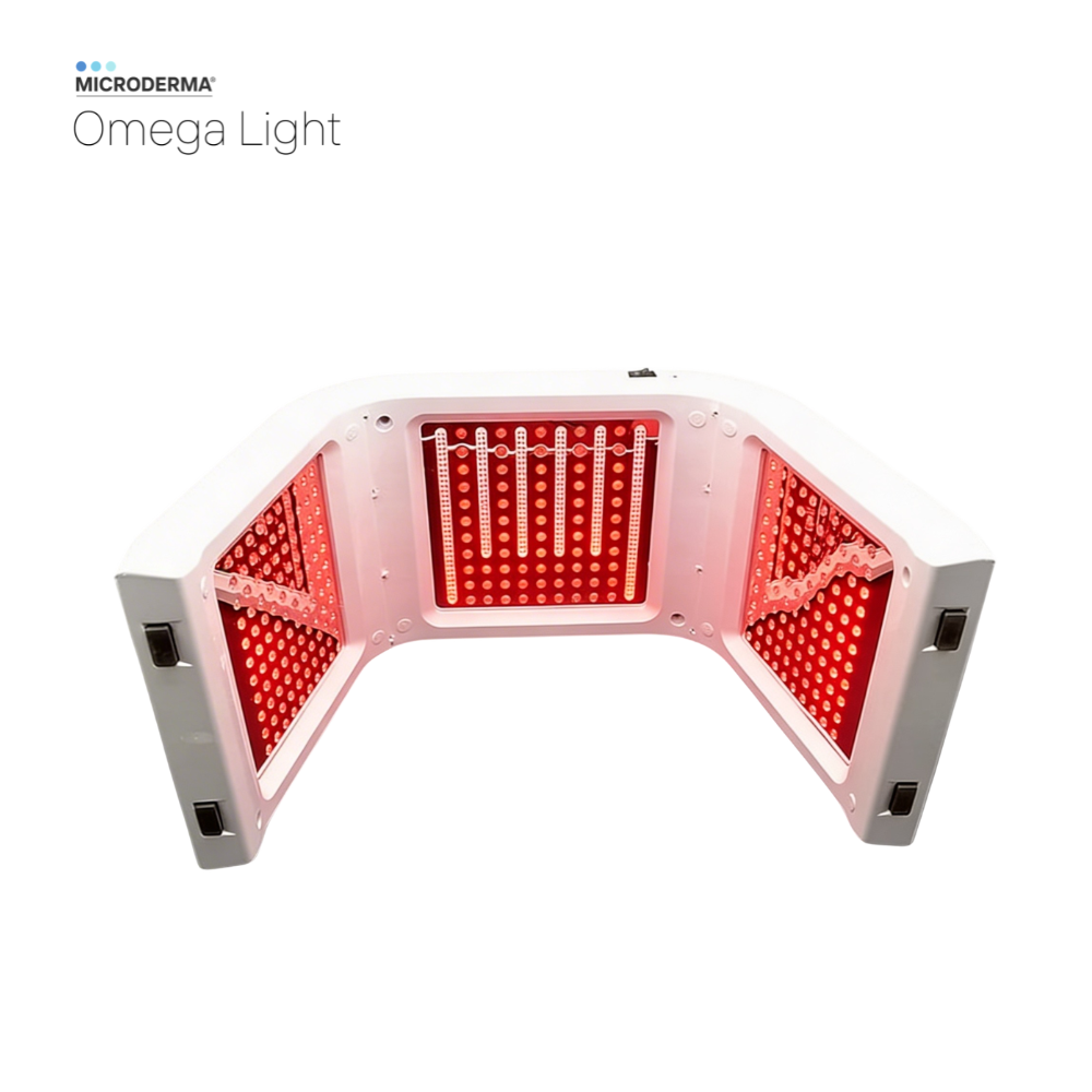 Microderma Omega Light to profesjonalne urządzenie do terapii światłem LED wykorzystujące technologie PDT (Photodynamic Therapy) oraz LLLT (Low Level Light Therapy). Emituje siedem rodzajów światła terapeutycznego: czerwone (640 nm), niebieskie (423 nm), zielone (523 nm), żółte (583 nm), pomarańczowe (532–640 nm), fioletowe (432–640 nm) oraz cyan (423–532 nm). Światło o określonych długościach fal oddziałuje na skórę na różnych poziomach, stymulując naturalne procesy regeneracyjne, wspierając terapię trądziku, redukując stany zapalne i rumień, poprawiając jędrność oraz elastyczność skóry, a także wyrównując jej koloryt. Urządzenie przeznaczone jest do profesjonalnych zabiegów kosmetologicznych jako bezpieczna, nieinwazyjna metoda poprawy kondycji skóry oraz wsparcie terapii anti-aging i zabiegów regeneracyjnych wykonywanych przez cały rok.
