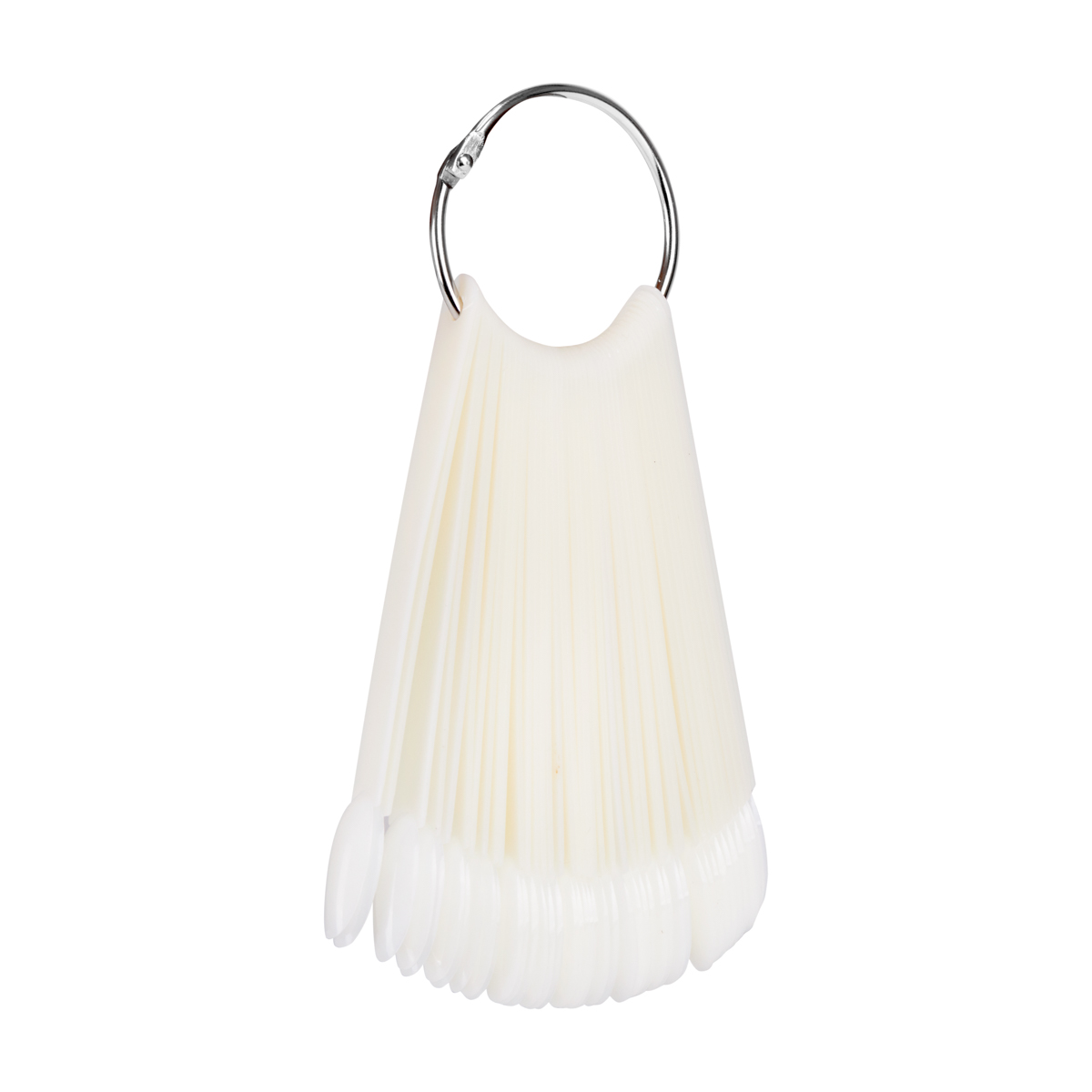 Wzornik w mlecznym kolorze pozwala na estetyczną prezentację wszelkich kolorów lakierów klasycznych oraz hybrydowych, pyłków czy żeli. Składa się z 50 pojedynczych tipsów o owalnym kształcie i w rozmiarze odpowiadającym prawdziwym paznokciom. Spięty jest praktycznym, rozpinanym kołem, które ułatwia przechowywanie całości. Każdy z tipsów wykonano z trwałego tworzywa sztucznego.